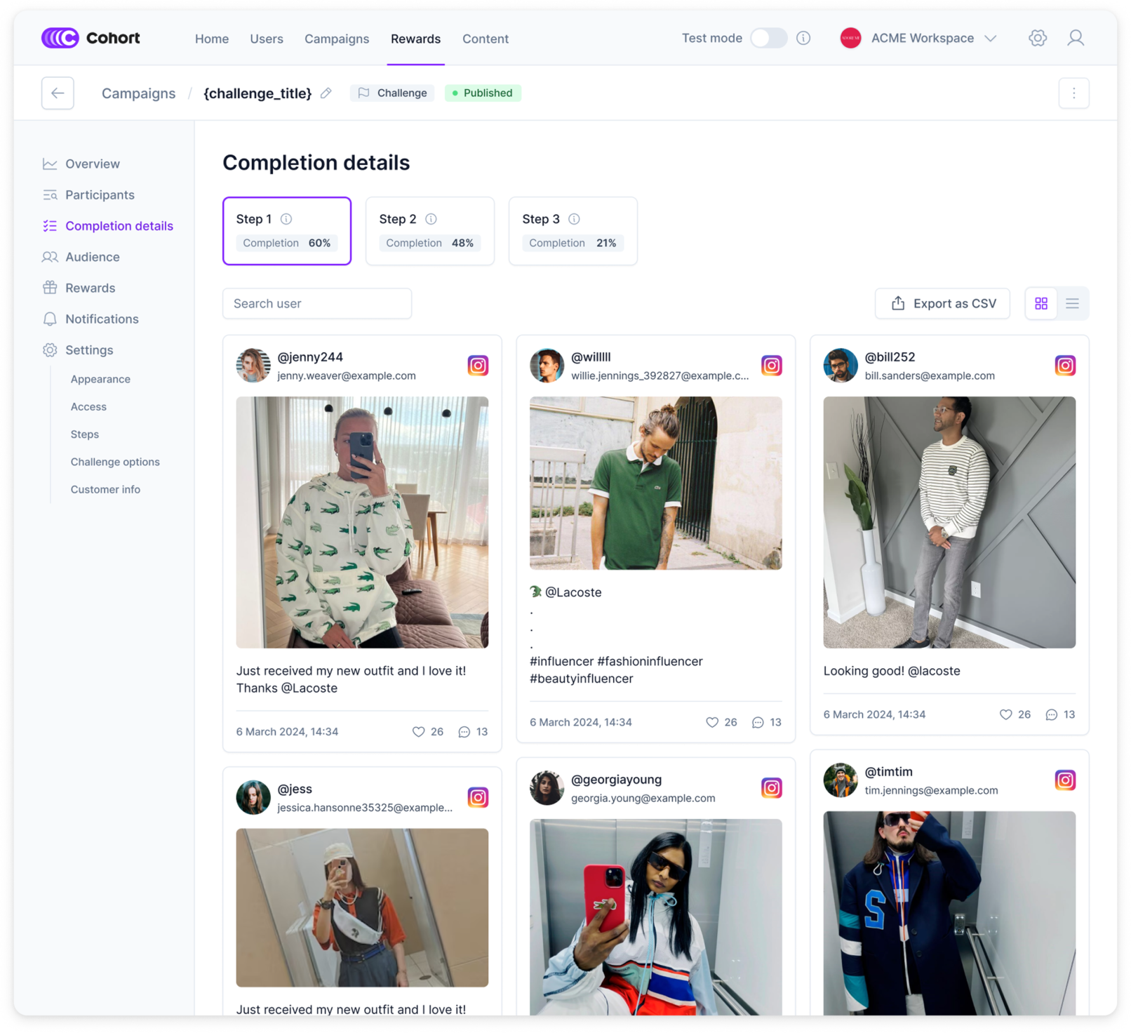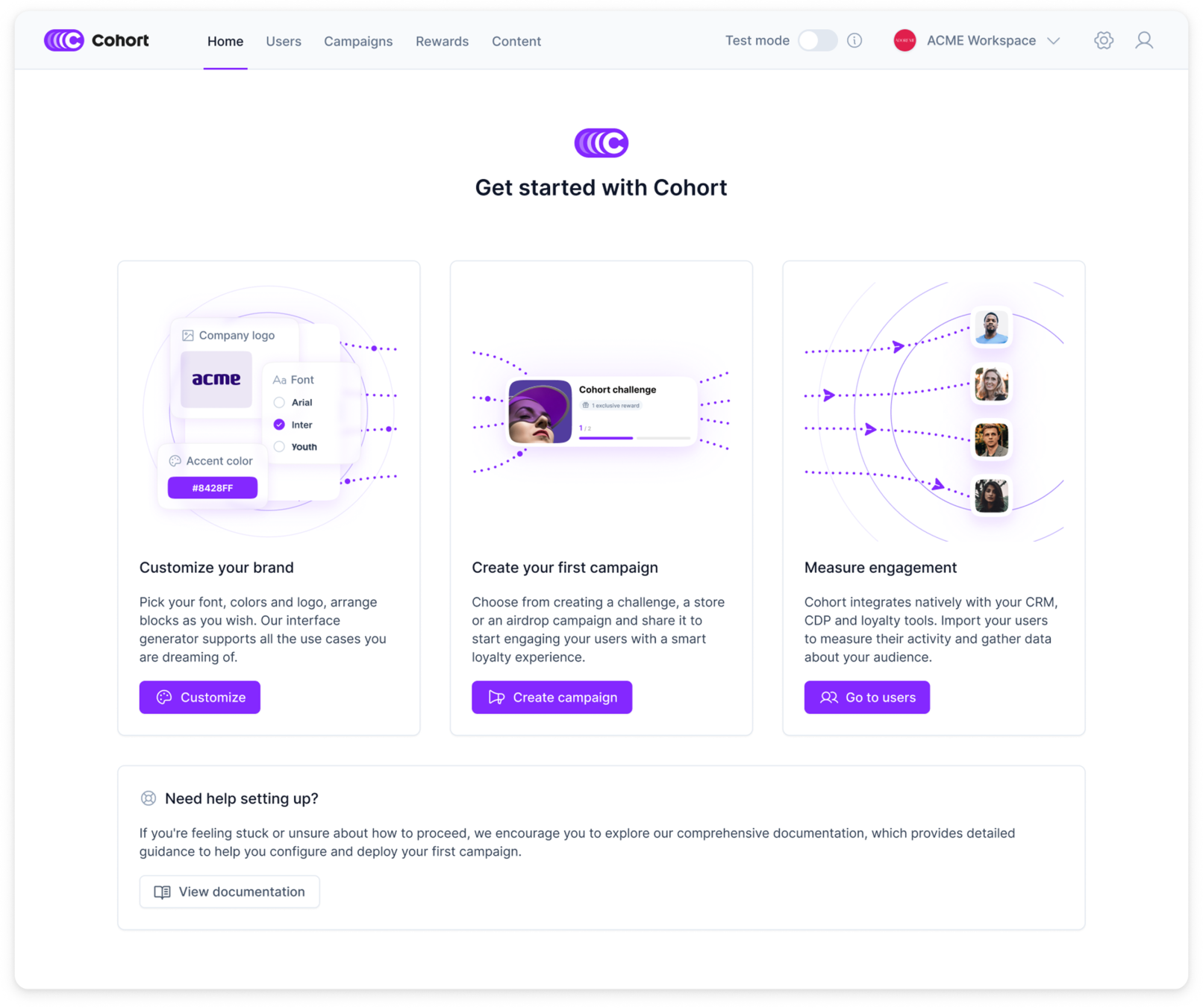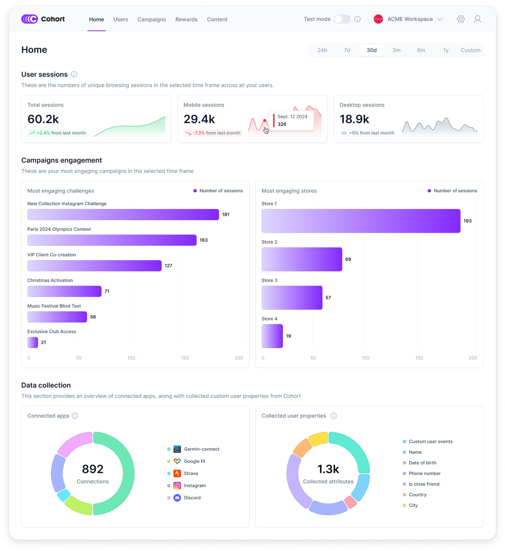 Cohort is a Smart Loyalty Platform that augments your existing loyalty tools with modern engagement and loyalty experiences. In a few clicks, with no IT required, Cohort empowers CRM & Loyalty managers to create personalized loyalty campaigns (social and activity-based challenges, UGC, mystery boxes, co-creation…) and reward customer engagement beyond transactions to deliver higher AOV and LTV. On average +28% active loyalty members, +16% purchase frequency, 1 day to launch a new campaign.