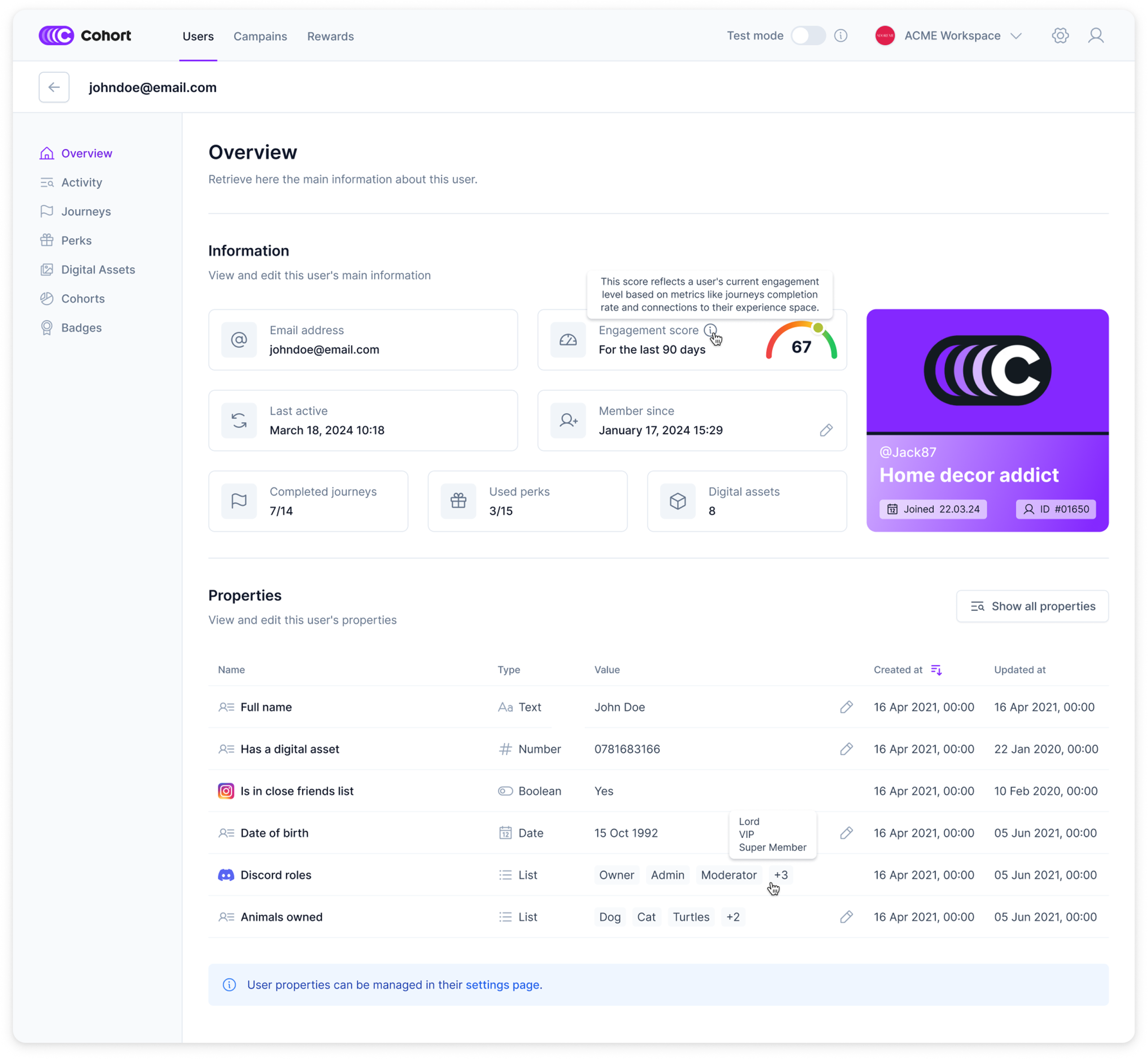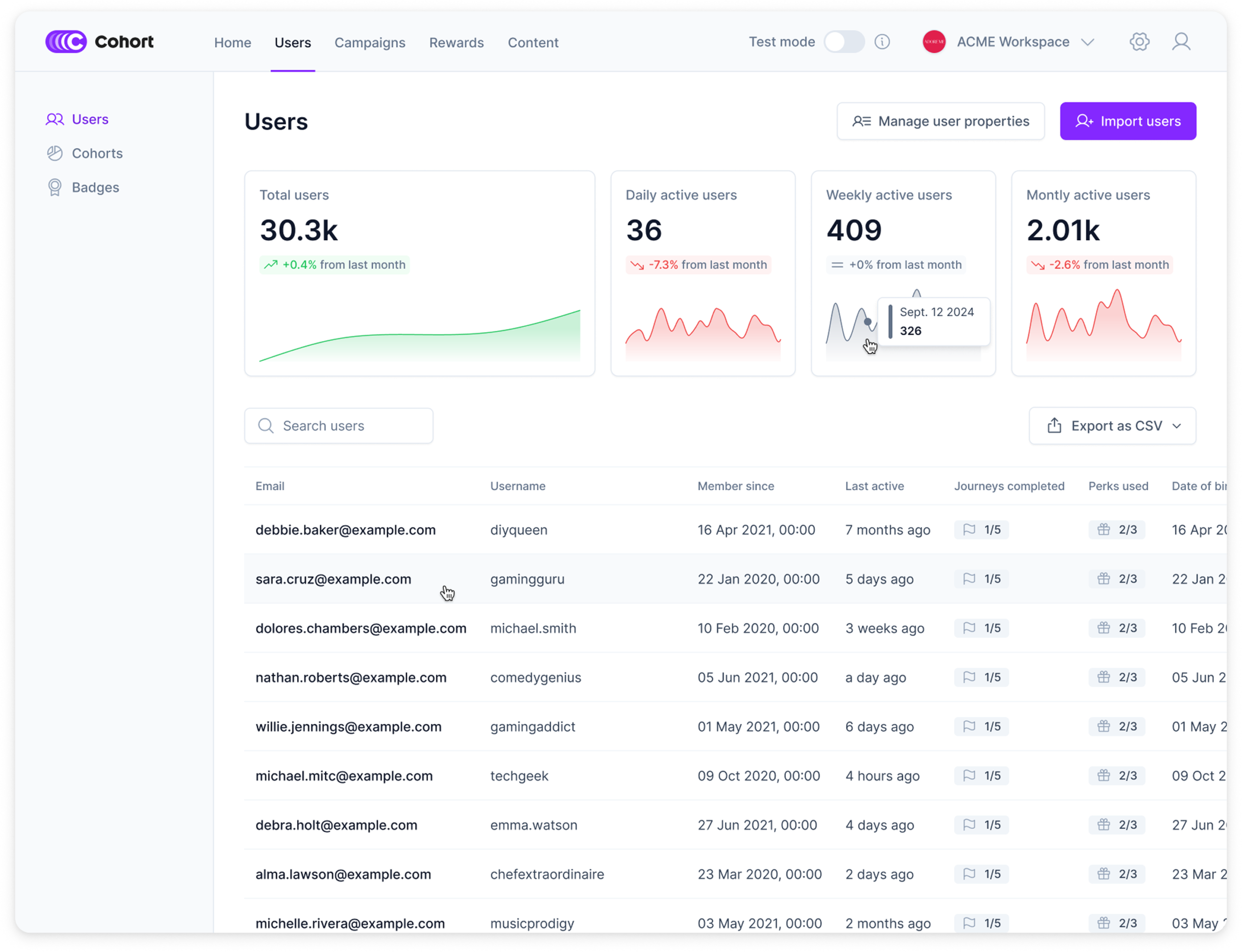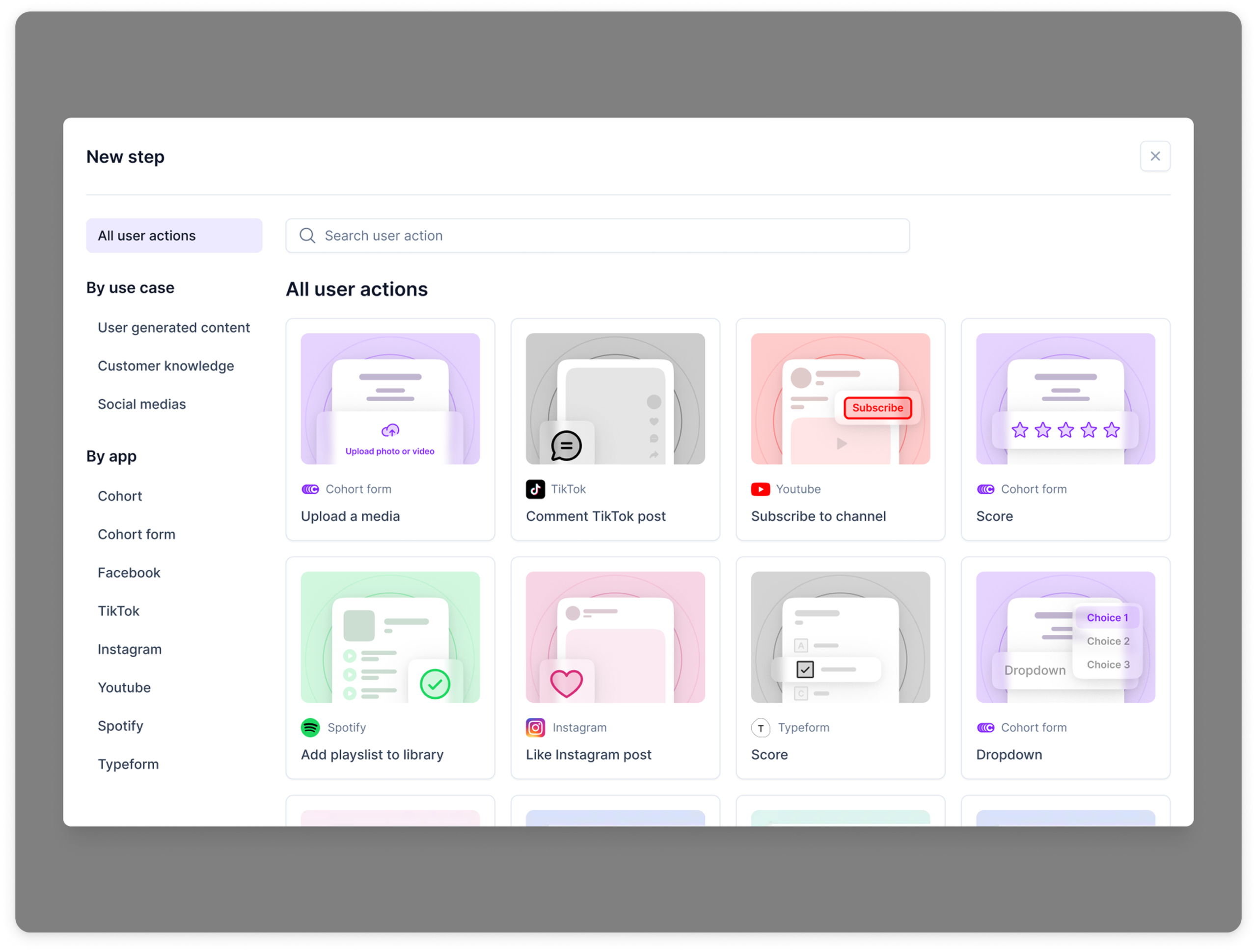 Cohort is a Smart Loyalty Platform that augments your existing loyalty tools with modern engagement and loyalty experiences. In a few clicks, with no IT required, Cohort empowers CRM & Loyalty managers to create personalized loyalty campaigns (social and activity-based challenges, UGC, mystery boxes, co-creation…) and reward customer engagement beyond transactions to deliver higher AOV and LTV. On average +28% active loyalty members, +16% purchase frequency, 1 day to launch a new campaign.